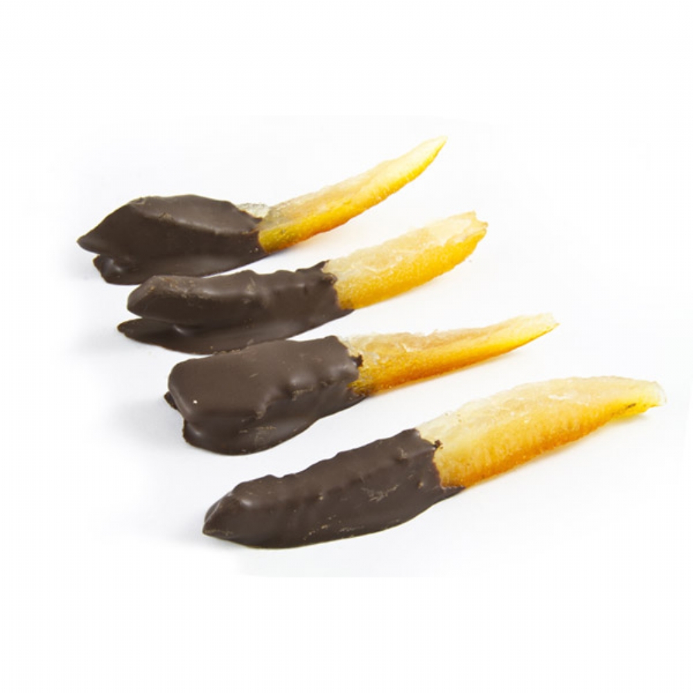 I filetti d'Arancio sono tagliati dalla scorza d'arancio Navel con albedo intatto, quindi molta più essenza. I filetti di Limone sono tagliati dai migliori limoni di Sicilia. I filetti di Zenzero sono sapientemente canditi per preservare al meglio le qualità organolettiche di questo delicato alimento.