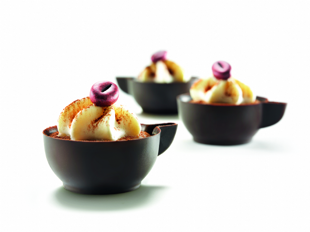 Tazzine in cioccolato pronte all'uso. Un'opportunitā in pių per poter arricchire il proprio assortimento in pasticceria.